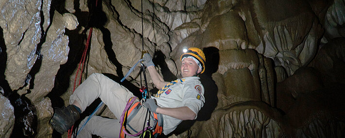 Auf dem Nationalen-Höhlenerkundungs-Kurs gehen wir nicht einfach nur in Höhlen. Wir befahren sie, was so viel bedeutet wie, wir entdecken neues Terrain, fordern uns selbst heraus und lernen dabei, welchen Mehrwert eine Höhlenerkundung für eine Teamaktion haben kann. Gemeinsam werden wir verschiedene Höhlen in Bayern befahren und dabei nicht nur die Schönheit der Natur unter Tage erleben, sondern auch alles Wissenswerte zur Gestaltung von Rangeraktionen in Höhlen lernen - von Planung, über Sicherheit und Abseiltechniken ist alles dabei.